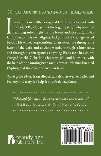 12-year-old Coby is navigating a complicated world. It's summer in 1980s Texas, and Coby heads to work with his dad, B.B., a logger. At the logging site, Coby is thrust headlong into a fight for the forest and its spirit, for his family, and for his own dignity. Coby finds his courage tested beyond his wildest expectations, in an adventure through the heart of the dark and ancient woods, through a hurricane, and through his emergence as a young Black man in a color-charged world. Coby finds his strength, and his voice, with the help of the haunting bear-man, a sweet little skunk named Orphus, and the magic of an open heart.