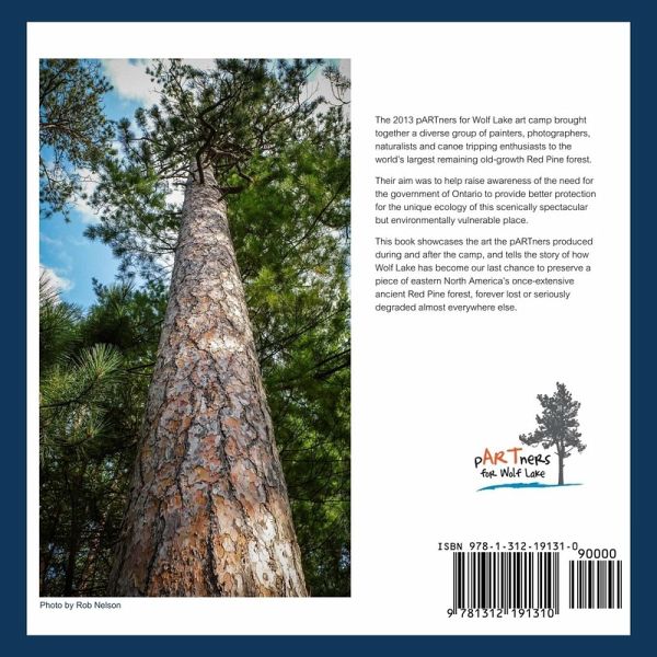 The old growth Red Pine forests around Wolf Lake in the Temagami area of Ontario have no protection from mineral exploration and mining. In August 2013 a group of artists camped for four days among the ancient Red Pines on the shore of Wolf Lake. The creative work done during those days, and the lasting inspiration of the experience has resulted in a traveling exhibition of art. Its intent is to raise awareness of the beauty and the vulnerability of the largest tract of mature Red Pines in existence, and the importance of keeping the Wolf Lake wilderness intact. In this book the pARTners for Wolf Lake share their passion in pictures and words.
