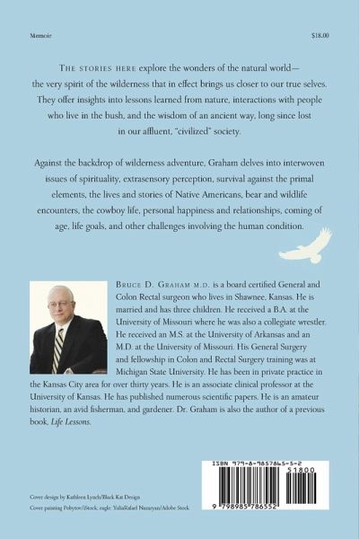 The stories here explore the wonders of the natural world - the very spirit of the wilderness that in effect brings us closer to our true selves. They offer insights into lessons learned from nature, interactions with people who live in the bush, and the wisdom of an ancient way, long since lost in our affluent, "civilized" society. Against the backdrop of wilderness adventure, Graham delves into interwoven issues of spirituality, extrasensory perception, survival against the primal elements, the lives and stories of Native Americans, bear and wildlife encounters, the cowboy life, personal happiness and relationships, coming of age, life goals, and other challenges involving the human condition.
