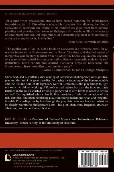 Spirit, Soul, and City offers a new reading of Coriolanus, Shakespeare's most political play and the last of his great tragedies. Portraying the founding of the Roman republic and the life and soul of its legendary warrior, Coriolanus, the play brings to light not only the hidden working of Rome's mixed regime but the inherent tragic tensions in the soul's spirited tendency to strive to go beyond itself in order to be true to itself.