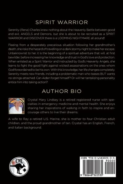 1920s Very few can see into the spiritual realm of good and evil. Serenity Charles is a young woman given that special gift of spiritual vision. With it, she commits to fight off the powers of wickedness. Her spiritual eyes are open to see evil deceit, and she observes demons that live within humans causing destructive behavior. Wearing a sacred armour, Serenity (Rena), goes into battle to protect those who the demons would coldly harm or annihilate. With her shield she is protected from their flaming darts while using her sword of the Word, she cuts them asunder sending them screaming in fear. Three of Gods Waring Angels, Avigdor, Ariel, and Akim, are her guardians and collaborators, supporting her to accomplish a victory. Aiden Baker, a mining boss, meets and is apparently taken by Rena's beauty. He fights his attraction for her by either ignoring or voicing his reluctance to pursue a promising relationship. Will this angry man remain stubborn or will he chase Rena when she leaves town to return to her birthplace?