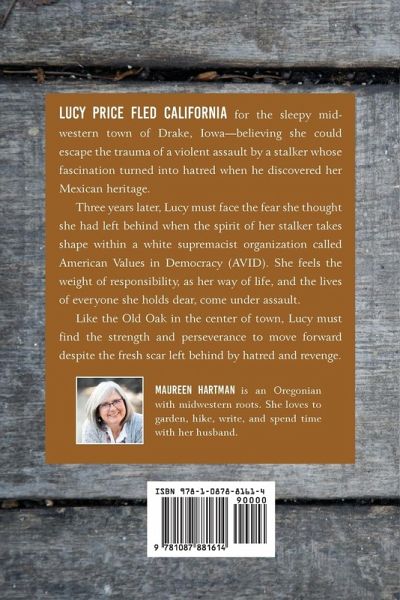 Lucy Price fled California for the sleepy midwestern town of Drake, Iowa-believing she could escape the trauma of a violent assault by a stalker whose fascination turned into hatred when he discovered her Mexican heritage. Three years later, Lucy must face the fear she thought she had left behind when the spirit of her stalker takes shape within a white supremacist organization called American Values in Democracy (AVID). She feels the weight of responsibility, as her way of life, and the lives of everyone she holds dear, come under assault. Like the Old Oak in the center of town, Lucy must find the strength and perseverance to move forward despite the fresh scar left behind by hatred and revenge.