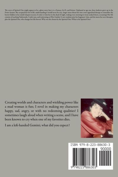 The cover of Spirited One might appear to be a ghost story, but it is a Fantasy, Sci-Fi, and fiction. Orphaned at age one, Jena Andrews grew up in the Foster System. She accepted her lot in life, understanding it would never be easy. Anger issues thrust her into court-appointed therapy to remember the horror hidden in her mind's deepest recesses. It only re-visits her in the dead of night, waking every morning in sweat-soaked sheets, screaming! Her life consists of teaching Taekwondo, 5-mile runs, and waitressing at Olive Garden! A new student joins her beginners' class, and she meets her new therapist, plus the Spirited One, who changes her life forever! Why was she chosen by the Spirited One? What is the Spirited One?