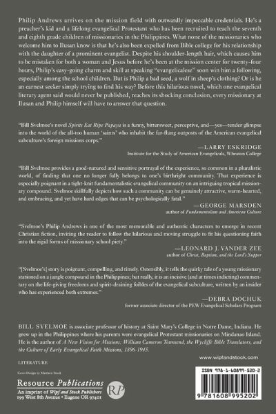 Philip Andrews arrives on the mission field with outwardly impeccable credentials. He's a preacher's kid and a lifelong evangelical Protestant who has been recruited to teach the seventh and eighth grade children of missionaries in the Philippines. What none of the missionaries who welcome him to Ilusan know is that he's also been expelled from Bible college for his relationship with the daughter of a prominent evangelist. Despite his shoulder-length hair, which causes him to be mistaken for both a woman and Jesus before he's been at the mission center for twenty-four hours, Philip's easy-going charm and skill at speaking "evangelicalese" soon win him a following, especially among the school children. But is Philip a bad seed, a wolf in sheep's clothing? Or is he an earnest seeker simply trying to find his way? Before this hilarious novel, which one evangelical literary agent said would never be published, reaches its shocking conclusion, every missionary at Ilusan and Philip himself will have to answer that question.