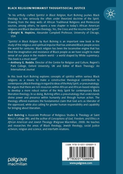 In this book Kurt Buhring explores concepts of spirit(s) within various Black religions as a means to make a constructive theological contribution to contemporary Black theology in regard to ideas of the Holy Spirit, or pneumatology. He argues that there are rich resources within African and African-based religions to develop a more robust notion of the Holy Spirit for contemporary Black liberation theology. In so doing, Buhring offers a pneumatology that understands divine power and presence within humanity and through human action. The theology offered maintains the fundamental claim that God acts as liberator of the oppressed, while also calling for greater human responsibility and capability for bringing about liberation.