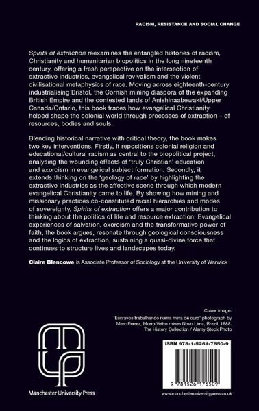 Spirits of extraction reexamines the entangled histories of racism, Christianity, and humanitarian biopolitics in the long nineteenth century, offering a fresh perspective on the intersection of extractive industries, evangelical revivalism, and the violent civilisational metaphysics of race. Moving across eighteenth-century industrialising Bristol, the Cornish mining diaspora of the expanding British Empire, and the contested lands of Anishinaabewaki/Upper Canada/Ontario, this book traces how evangelical Christianity helped shape the colonial world through processes of extraction - of resources, bodies, and souls. Blending historical narrative with critical theory, the book makes two key interventions. Firstly, it repositions colonial religion and educational/cultural racism as central to the biopolitical project, analysing the wounding effects of 'truly Christian' education and exorcism in evangelical subject formation. Secondly, it extends thinking on the 'geology of race' by highlighting the extractive industries as the affective scene through which modern evangelical Christianity came to life. By showing how mining and missionary practices co-constituted racial hierarchies and modes of sovereignty, Spirits of extraction offers a major contribution to thinking about the politics of life and resource extraction. Evangelical experiences of salvation, exorcism, and the transformative power of faith, the book argues, resonate through geological consciousness and the logics of extraction, sustaining a quasi-divine force that continues to structure lives and landscapes today.