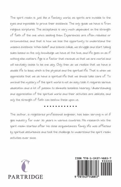 The spirit realm is just like a fantasy world, as spirits are invisible to the eyes and impossible to prove their existence. The only guide we have is from religious scriptures. The acceptance is very much dependent on the strength of faith of the one who's seeking them. Experiences are often rebuked or circumvented, and that is how we lose the opportunity to understand the unseen's existence. When belief and science collide, we struggle and start taking sides based on the only knowledge we have at the time, and life goes on as if nothing else matters. Age is a factor that reminds us that we are mortal and will inevitably cease to be one day. Only then do we realize that we have a double life to lead, which is the physical and the spiritual life. That is when we appreciate that we do have a spiritual life that we should take care of. To unravel the mystery of the spirit world is not an easy task; it requires serious dedication and a lot of passion to eliminate baseless hearsay. Understanding and appreciation of the spiritual world and their activities are delicate, and only the strength of faith can bestow these upon us.