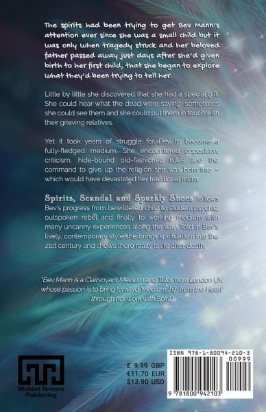 The spirits had been trying to get Bev Mann's attention ever since she was a small child but it was only when tragedy struck and her beloved father passed away just days after she'd given birth to her first child, that she began to explore what they'd been trying to tell her. Little by little she discovered that she had a special gift. She could hear what the dead were saying, sometimes she could see them and she could put them in touch with their grieving relatives. Yet it took years of struggle for Bev to become a fully-fledged medium. She encountered opposition, criticism, hide-bound old-fashioned rules and the command to give up the religion she was born into - which would have devastated her traditional mum. Spirits, Scandal and Sparkly Shoes follows Bev's progress from bewildered child to student psychic, outspoken rebel and finally to working medium with many uncanny experiences along the way. Told in Bev's lively, contemporary style she brings spiritualism into the 21st century and shows there really is life after death. ¿"Bev Mann is a Clairvoyant Medium and Tutor from London UK whose passion is to bring forward 'Mediumship from the Heart' through her work with Spirit."