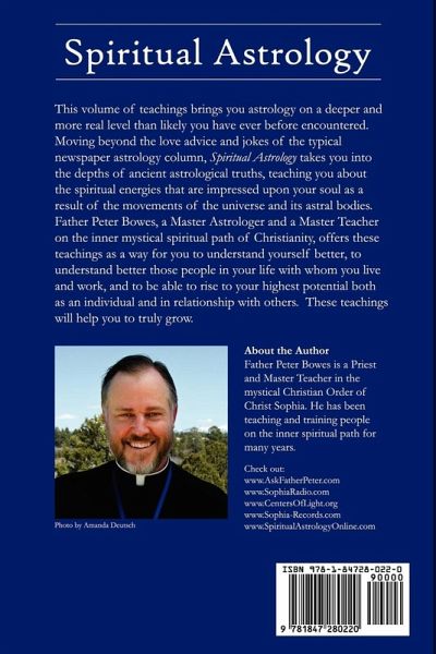 This volume of teachings brings you astrology on a deeper and more real level than likely you have ever before encountered. Moving beyond the love advice and jokes of the typical newspaper astrology column, Spiritual Astrology takes you into the depths of ancient astrological truths, teaching you about the spiritual energies that are impressed upon your soul as a result of the movements of the universe and its astral bodies. Father Peter Bowes, a Master Astrologer and a Master Teacher on the inner mystical spiritual path of Christianity, offers these teachings as a way for you to understand yourself better, to understand better those people in your life with whom you live and work, and to be able to rise to your highest potential both as an invidivual and in relationship with others. These teachings will help you to truly grow.