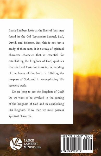 Lance Lambert looks at the lives of four men found in the Old Testament: Samuel, Saul, David, and Solomon. But, this is not just a study of these men, it is a study of spiritual character—character that is essential for establishing the kingdom of God; qualities that the Lord looks for in us in the building of the house of the Lord, in fulfilling the purpose of God, and in accomplishing His recovery work. Do we long to see the kingdom of God? Do we want to be involved in the coming of the kingdom of God and in establishing His kingdom? If so, then we must possess spiritual character.