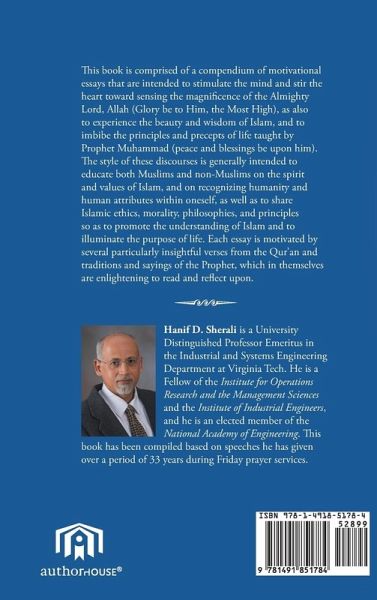 This book is comprised of a compendium of motivational essays that are intended to stimulate the mind and stir the heart toward sensing the magnificence of the Almighty Lord, Allah (Glory be to Him, the Most High), as also to experience the beauty and wisdom of Islam, and to imbibe the principles and precepts of life taught by Prophet Muhammad (peace and blessings be upon him). The style of these discourses is generally intended to educate both Muslims and non-Muslims on the spirit and values of Islam, and on recognizing humanity and human attributes within oneself, as well as to share Islamic ethics, morality, philosophies, and principles so as to promote the understanding of Islam and to illuminate the purpose of life. Each essay is motivated by several particularly insightful verses from the Qur’an and traditions and sayings of the Prophet, which in themselves are enlightening to read and reflect upon.