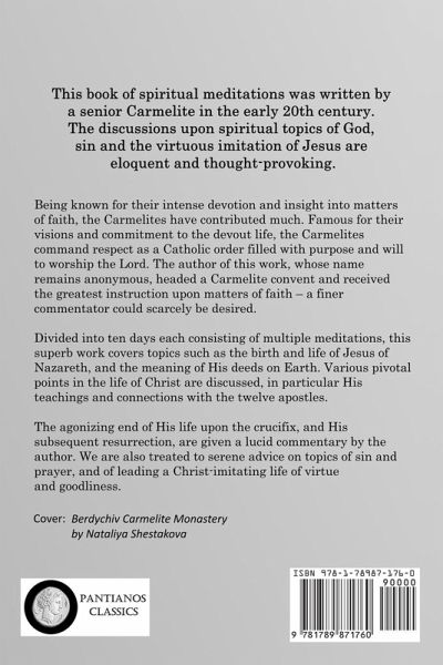 This book of spiritual meditations was written by a senior Carmelite in the early 20th century. The discussions upon spiritual topics of God, sin and the virtuous imitation of Jesus are eloquent and thought-provoking. Being known for their intense devotion and insight into matters of faith, the Carmelites have contributed much. Famous for their visions and commitment to the devout life, the Carmelites command respect as a Catholic order filled with purpose and will to worship the Lord. The author of this work, whose name remains anonymous, headed a Carmelite convent and received the greatest instruction upon matters of faith - a finer commentator could scarcely be desired. Divided into ten days each consisting of multiple meditations, this superb work covers topics such as the birth and life of Jesus of Nazareth, and the meaning of His deeds on Earth. Various pivotal points in the life of Christ are discussed, in particular his teachings and connections with the twelve apostles. The agonizing end of His life upon the crucifix, and His subsequent resurrection, are given a lucid commentary by the author. We are also treated to serene advice on topics of sin and prayer, and of leading a Christ-imitating life of virtue and goodliness.