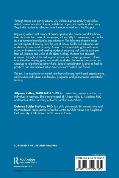 Through stories and conversations, Drs. Dolores BigFoot and Allyson Kelley reflect on research, clinical work, faith-based topics, spirituality, and recovery. They invite readers to reflect on what it means to walk on a healing path.