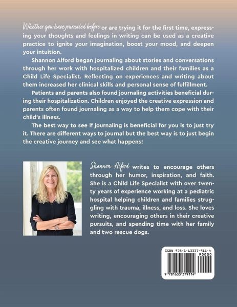 Whether you have journaled before or are trying it for the first time, expressing your thoughts and feelings in writing can be used as a creative practice to ignite your imagination, boost your mood, and deepen your intuition. Shannon Alford began journaling about stories and conversations through her work with hospitalized children and their families as a Child Life Specialist. Reflecting on experiences and writing about them increased her clinical skills and personal sense of fulfillment. Patients and parents also found journaling activities beneficial during their hospitalization. Children enjoyed the creative expression and parents often found journaling as a way to help them cope with their child's illness. The best way to see if journaling is beneficial for you is to just try it. There are different ways to journal but the best way is to just begin the creative journey and see what happens!