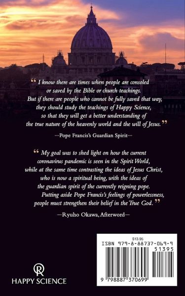 Whether you've lost hope in Christianity or are a devout Catholic, this book is for you. Deep in the subconscious of Pope Francis are his hopelessness, goodwill, and limit as a human being amid the ongoing coronavirus pandemic. You may find his truthful and honest words to be a reflection of your questions or doubts against the Christian teachings and churches. Okawa is the Master of Happy Science, a religion founded in 1986 and now joined by people in more than 100 countries across the world. He has given over 3,450 lectures and has published a total of more than 3,050 books worldwide, many of which are translated into 40 languages. Among these books, over 550 of them are the Spiritual Interview series recorded through Okawa's unparalleled spiritual ability. He can summon the spirit of any deceased person or any guardian spirit of a living person. Oftentimes, spirits visit Okawa to voice their opinion through him. Simply put, the guardian spirit of Pope Francis is in agony because he can't tell where the will of Jesus lies and because he can't hear the answers to his prayers. This book mentions, in part, the answers to the coronavirus pandemic from Jesus, who is now in heaven. For more, please read Jesus Christ's Answers to the Coronavirus Pandemic that we already published. By reading these two books, you will be able to understand the true will of Jesus and the faith in true God, both of which Christianity has lost.