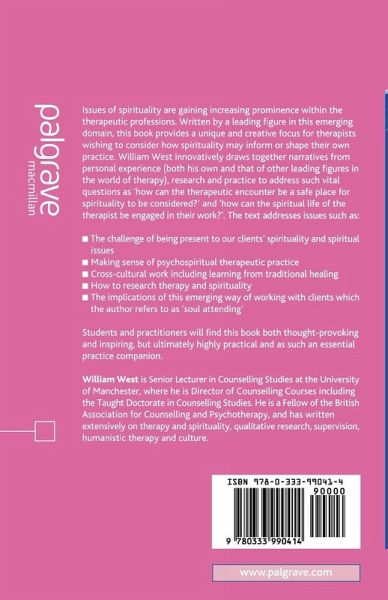 The important and engaging book encourages counsellors, psychotherapists, pastoral care workers and others involved in the helping professions to consider the significance of spirituality and spiritual experiences both for their clients and for the practice of therapy. Drawing on the author's wide experience of researching, teaching and practicing therapy and spirituality within therapeutic, healing, religious and educational settings, it addresses: - the challenge of being present to our clients' spirituality and spiritual issues - making sense of psychospiritual therapeutic practice - cross-cultural work including learning from traditional healing - how to research therapy and spirituality - the implications of this emerging way of working with clients which the author refers to as 'soul attending' Students and practitioners will find this book both thought-provoking and inspiring, but ultimately highly practical and as such an essential practice companion.