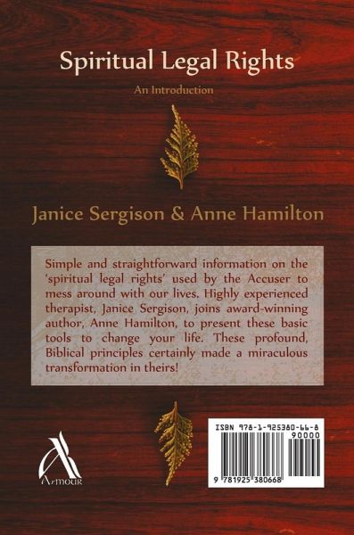 Simple and straightforward information on the "spiritual legal rights" used by the Accuser to mess around with our lives. Highly experienced therapist Janice Sergison joins award-winning author Anne Hamilton to present these basic tools to change your life. These profound Biblical principles certainly made a miraculous transformation in theirs!