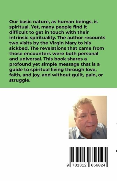 Our basic nature, as human beings, is spiritual. Yet, many people find it difficult to get in touch with their intrinsic spirituality. The author recounts two visits by the Virgin Mary to his sickbed. The revelations that came from those encounters were both personal and universal. This book shares a profound yet simple message that is a guide to spiritual living through love, faith, and joy, and without guilt, pain, or struggle.