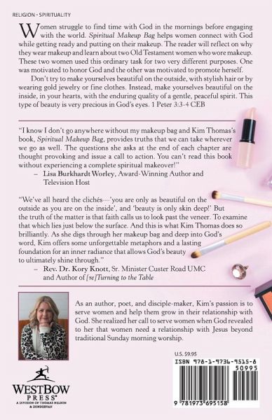 Start your day with Thomas' amazing Christian Living book for women: Spiritual Makeup Bag! Women struggle to find time with God in the mornings before engaging with the world. Spiritual Makeup Bag helps women connect with God while getting ready and putting on their makeup. The reader will reflect on why they wear makeup and learn about two Old Testament women who wore makeup. These two women used this ordinary task for two very different purposes. One was motivated to honor God and the other was motivated to promote herself. Don't try to make yourselves beautiful on the outside, with stylish hair or by wearing gold jewelry or fine clothes. Instead, make yourselves beautiful on the inside, in your hearts, with the enduring quality of a gentle, peaceful spirit. This type of beauty is very precious in God's eyes. 1 Peter 3:3-4 CEB