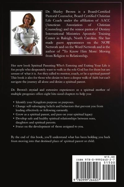 Dr. Brown's myriad and extensive experiences as a spiritual mother of multiple progenies offers eight bite-sized chapters to help you: ¿ Identify your Kingdom purpose or purposes. ¿ Change self-sabotaging beliefs and behaviors that prevent you from leading effectively or following earnestly. ¿ Grow as a spiritual parent, and pass on your spiritual legacy ¿ Develop safe and healthy spiritual relationships between sons, daughters and spiritual parents. ¿ Focus on the development of those assigned to you. By the end of this book, you'll understand what has been holding you back from moving into that destined place of spiritual parent or child.