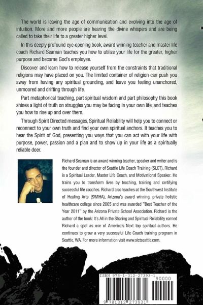 The world is leaving the age of communication and evolving into the age of intuition. More and more people are hearing the divine whispers and are being called to take their life to a greater higher level. In this deeply profound eye-opening book, award winning teacher and Master Life Coach Richard Seaman teaches you how to utilize your life for the greater, higher purpose and become God's employee. Discover and learn how to release yourself from the constraints that traditional religions may have placed on you. The limited container of religion can push you away from having any spiritual grounding, and leave you feeling unanchored, unmoored and drifting through life. Part metaphorical teaching, part spiritual wisdom and part philosophy this book shines a light of truth on struggles you may be facing in your own life, and teaches you how to rise up and over them. Spiritual Reliability will help you to connect or reconnect to your own truth and find your own spiritual anchors.
