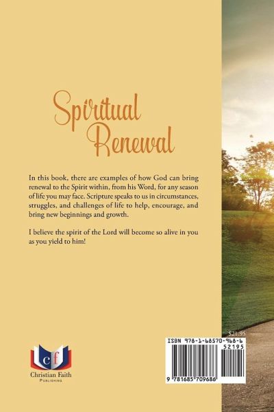 In this book, there are examples of how God can bring renewal to the Spirit within, from his Word, for any season of life you may face. Scripture speaks to us in circumstances, struggles, and challenges of life to help, encourage, and bring new beginnings and growth. I believe the spirit of the Lord will become so alive in you as you yield to him! 2