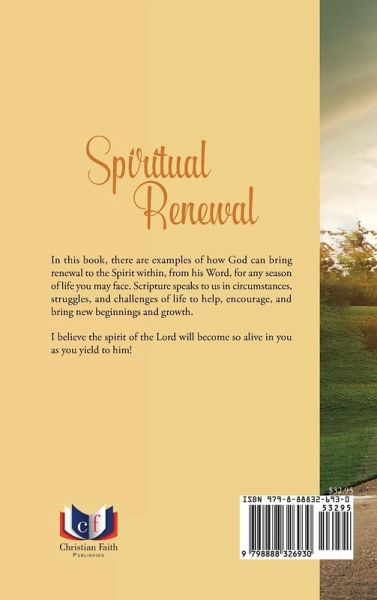 In this book, there are examples of how God can bring renewal to the Spirit within, from his Word, for any season of life you may face. Scripture speaks to us in circumstances, struggles, and challenges of life to help, encourage, and bring new beginnings and growth. I believe the spirit of the Lord will become so alive in you as you yield to him! 2