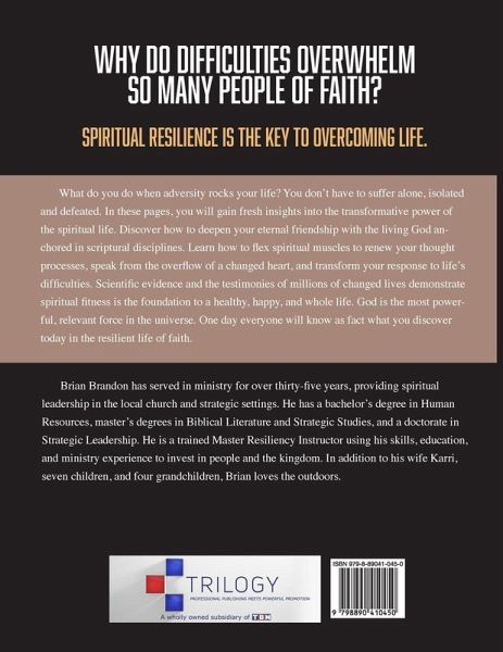 Why do difficulties overwhelm so many people of faith? Spiritual resilience is the key to overcoming life. What do you do when adversity rocks your life? You don't have to suffer alone, isolated and defeated. In these pages, you will gain fresh insights into the transformative power of the spiritual life. Discover how to deepen your eternal friendship with the living God anchored in scriptural disciplines. Learn how to flex spiritual muscles to renew your thought processes, speak from the overflow of a changed heart, and transform your response to life's difficulties. Scientific evidence and the testimonies of millions of changed lives demonstrate spiritual fitness is the foundation to a healthy, happy, and whole life. God is the most powerful, relevant force in the universe. One day everyone will know as fact what you discover today in the resilient life of faith