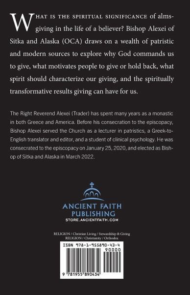 What is the spiritual significance of almsgiving in the life of a believer? Bishop Alexei of Sitka and Alaska (OCA) draws on a wealth of patristic and modern sources to explore why God commands us to give, what motivates people to give or hold back, what spirit should characterize our giving, and the spiritually transformative results giving can have for us.