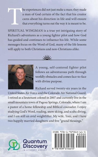 The experiences did not just make a man; they made a man of God certain of the fact that his creator cares about his direction in life and will ensure that everything turns out the way it is meant to be. SPIRITUAL WINGMAN is a true yet intriguing story of Richard's adventures as a young fighter pilot and how God has guided and continues to influence his life. While some messages focus on the Word of God, many of the life lessons will apply to both Christians and non-Christians alike. A young, self-centered fighter pilot follows an adventurous path through worldly obstacles and comes face-to-face with divine purpose. Richard served twenty-six years in the United States Air Force and the Colorado Air National Guard. I retired as a lieutenant colonel in 2007 and currently live in the small mountain town of Pagosa Springs, Colorado, where I am a pastor of a home fellowship and Biblical counselor. I enjoy studying God's Word, reading, snow skiing, and scuba diving, and I am still an avid weightlifter. My wife, Toni, and I have two happily married daughters and five "grand blessings."