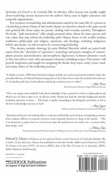 Description: Spirituality and Growth on the Leadership Path: An Abecedary offers lessons not usually taught about leadership, lessons learned over the author's more than thirty years in higher education and nonprofit organizations. Few resources on leadership and administration attend to the inner life of a person in a leadership position. Many of this book's themes are therefore related to the inner moral and spiritual life. Some topics are prosaic, dealing with everyday activities. Throughout the book, ""pith instructions"" offer simple practical advice about the inner process and core values that may inform the leadership path. Haynes draws on the world's wisdom traditions--philosophy and religion, mysticism and theology, including indigenous beliefs and rituals--as rich resources for reconceiving leadership. This abecedary includes drawings by artist Michael Shernick, which are paired with entries from the ""chronicles of experience,"" etymology and poetry, examples of contemplative practice and meditation, and metaphoric digressions. Common elements--such as lists and advice--mix with uncommon elements, including recipes. This primer will provide inspiration and insight for navigating the shoals, deep water, rocky coasts, wind, and sunny climes of the leadership journey. Endorsements: ""A scholar, an artist, a PhD from Harvard in religion and fine arts, and an experienced academic leader, this powerful reflection of Deborah Haynes's integration of all of these forces in her life resulted in her advocacy of a leadership path that is both authentic and deeply rooted in service to others."" --John Pierce, Retired Executive Director, Oregon Historical Society ""This is a unique and wonderful book about leadership. It has a practical as well as a philosophical and ethical view of what it takes to be an effective leader. Haynes has both the scholarly background and the leadership experience to know. . . . This book is equally outstanding at describing the spirituality as well as the how-to knowledge necessary to lead."" --Peter Spear, Professor and Provost Emeritus, University of Wisconsin ""Spirituality and Growth on the Leadership Path is a work that will feed the spirit of those in leadership positions, from academic officers to corporate executives, from nonprofit directors to clergy in the church. . . . This is an invitation to explore how we can feed our inner life and discover our work to be a vocation rather than simply a job."" --Wilson Yates, President Emeritus and Professor Emeritus of Religion, Society, and the Arts, United Theological Seminary About the Contributor(s): Deborah J. Haynes is Professor of Art and Art History at the University of Colorado, Boulder. She is both a writer and artist. Haynes has published several other books: Bakhtin and the Visual Arts (1995), The Vocation of the Artist (1997), Art Lessons (2003), Book of This Place: The Land, Art & Spirituality (Pickwick Publications, 2009). Bakhtin Reframed is forthcoming.