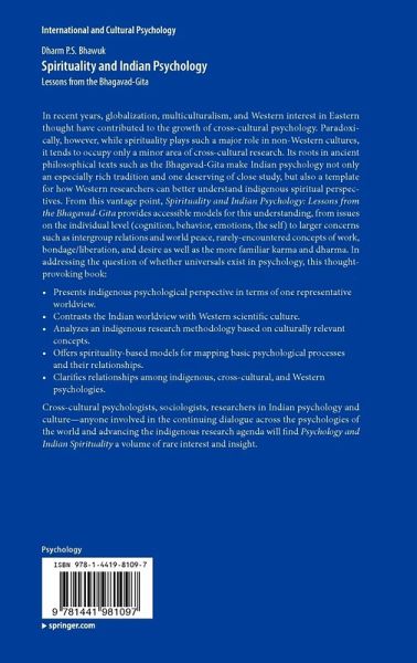 "The blurb on the dust jacket for Spirituality and Indian Psychology: Lessons From the Bhagavad-Gita succeeds admirably, noting that 'globalization, multiculturalism, and Western interest in Eastern thought' have led to increased interest in cross-cultural psychology. ... has potential value for psychologists and other helping professionals. Those interested in the spirituality/psychology interface will find that this book grounds its spiritual references in the Bhagavad-Gita, helping Western readers understand how profoundly Indian thought has been influenced by this and other classics of Indian spiritual literature." (Dennis Davidson, PsycCRITIQUES, Vol. 56 (36), September, 2011)
