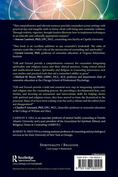 Carman S. Gill is an associate professor of mental health counseling at Florida Atlantic University and a past president of the Association for Spiritual, Ethical, and Religious Values in Counseling (ASERVIC). Robert R. Freund is a visiting assistant professor of counseling and psychological services at the State University of New York at Oswego.