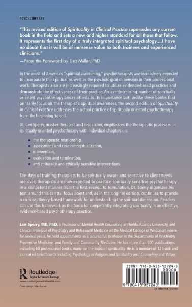 Spirituality in Clinical Practice is light years beyond books that emphasizes developing therapist awareness of spirituality; instead it emphasizes the effective integration of spirituality in all dimension of psychotherapy process: therapeutic alliance, assessment, case conceptualization, intervention, and termination.