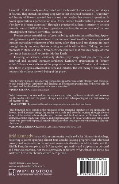 As a child, Brid Kennedy was fascinated with the beautiful scents, colors, and shapes of flowers. They stirred something deep within that she could not name. The mystery and beauty of flowers sparked her curiosity to develop her research question: Is flower appreciation a participation in a Divine-human transformation process, and if so, how is it being expressed? Through a practice of authentic interiority striving towards beauty, intelligibility, truth, goodness, and love, the author now realizes how interdependent humans are with all creation. Flowers are an essential part of creation bringing in wisdom and healing. Appreciating them is a participation in a Divine-human transformation process expressed through our acknowledgement of the scent, color, shape, and any changes in these through deeply knowing that something sacred is within them. Taking precious moments to stand and smell flowers enriches the soul as it reminds people of who they are as humans and to care for Mother Earth. Drawing on science, spirituality studies, psycho-spiritual perspectives, and historical and cultural literature awakened Kennedy's appreciation of ""beauty within."" Flowers are evidence of the purpose in the universe. Consider and contemplate them in depth, as this book invites and initiates. The well-being of one's body is not possible without the well-being of the planet.