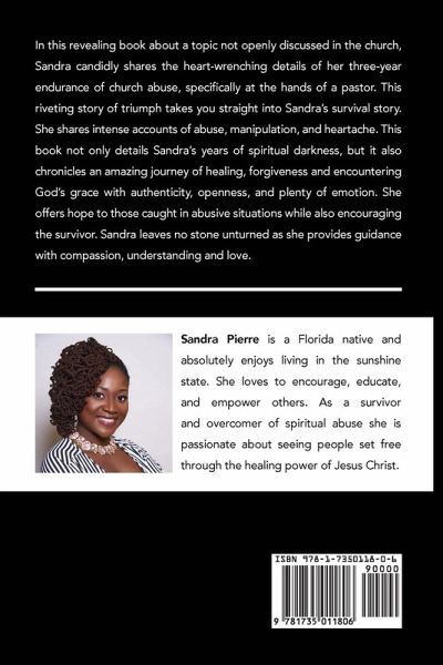 Can a community you call church cause pain? What if you could not give language to what you experienced? Can you even describe what you are going through? Some will say that it's just a "little church hurt" and you should not take it personally. The truth is you might be a victim of spiritual abuse and not know it. This book takes you on a journey of Sandra's experience in a cult disguised as a modern-day church. The uncensored accounts of abuse on the pages of this book unmask the manipulative tactics used by individuals who call themselves church leaders. The valuable insight on spiritual abuse through her experience is a guide to freedom. The trauma may seem debilitating but on the other side of that pain healing is possible. This book is packed with examples of emotional, psychological, and even physical abuse. Sandra's journey from victim to survivor to overcomer will bring you clarity that encourages you to take back your freedom through the healing power of Jesus Christ.