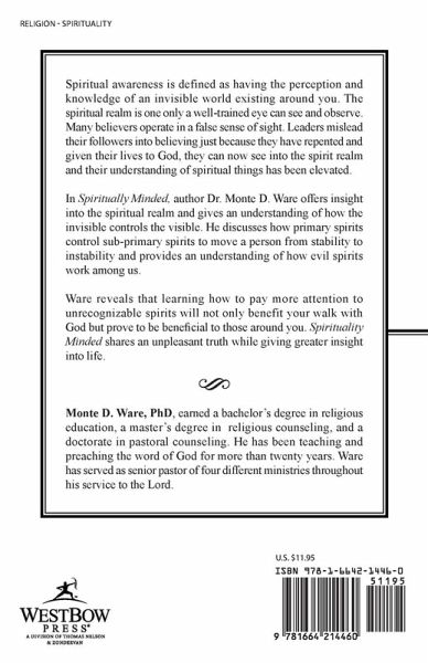 Spiritual awareness is defined as having the perception and knowledge of an invisible world existing around you. The spiritual realm is one only a well-trained eye can see and observe. Many believers operate in a false sense of sight. Leaders mislead their followers into believing just because they have repented and given their lives to God, they can now see into the spirit realm and their understanding of spiritual things has been elevated. In Spiritually Minded, author Dr. Monte D. Ware offers insight into the spiritual realm and gives an understanding of how the invisible controls the visible. He discusses how primary spirits control sub-primary spirits to move a person from stability to instability and provides an understanding of how evil spirits work among us. Ware reveals that learning how to pay more attention to unrecognizable spirits will not only benefit your walk with God but prove to be beneficial to those around you. Spirituality Minded shares an unpleasant truth while giving greater insight into life.