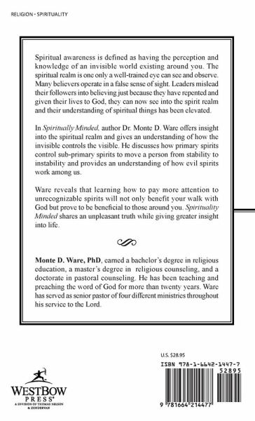 Spiritual awareness is defined as having the perception and knowledge of an invisible world existing around you. The spiritual realm is one only a well-trained eye can see and observe. Many believers operate in a false sense of sight. Leaders mislead their followers into believing just because they have repented and given their lives to God, they can now see into the spirit realm and their understanding of spiritual things has been elevated. In Spiritually Minded, author Dr. Monte D. Ware offers insight into the spiritual realm and gives an understanding of how the invisible controls the visible. He discusses how primary spirits control sub-primary spirits to move a person from stability to instability and provides an understanding of how evil spirits work among us. Ware reveals that learning how to pay more attention to unrecognizable spirits will not only benefit your walk with God but prove to be beneficial to those around you. Spirituality Minded shares an unpleasant truth while giving greater insight into life.