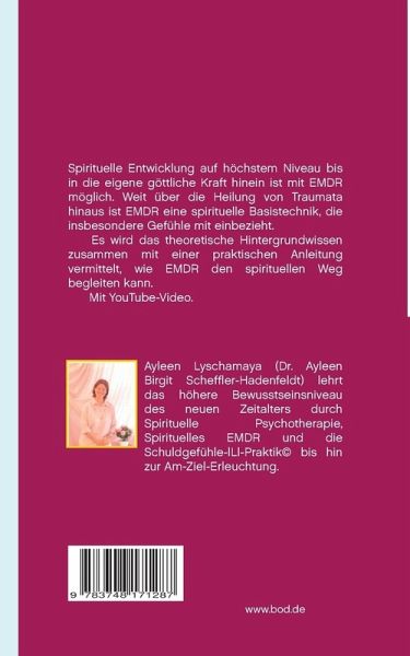 Spirituelle Entwicklung auf höchstem Niveau bis in die eigene göttliche Kraft hinein ist mit EMDR möglich. Weit über die Heilung von Traumata hinaus ist EMDR eine spirituelle Basistechnik, die insbesondere Gefühle mit einbezieht und Abgetrenntes verbinden kann. Es wird das theoretische Hintergrundwissen zusammen mit einer praktischen Anleitung vermittelt, wie EMDR den spirituellen Weg begleiten kann. Mit YouTube-Video.