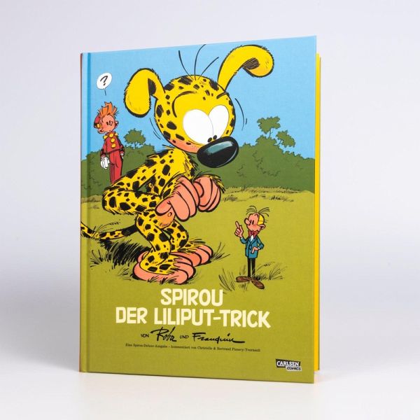 Wie konnte das passieren? Und vor allem: Wie lässt sich das rückgängig machen? Wieder einmal muss Spirou seinen Freund Fantasio retten. Für die aberwitzige Kurzgeschichte "Der Liliput-Trick" holte sich André Franquin Nachwuchszeichner Jean Roba - den späteren Schöpfer von "Boule und Bill" - ins Boot. In der Deluxe-Ausgabe wird die Geschichte in zwei Versionen präsentiert: Als kolorierte Fassung und als Faksimile-Version. Ein ausführlicher Kommentar wirft einen Blick auf die Entstehungsgeschichte. Für Spirou-FansUmfangreicher redaktioneller KommentarFaksimile-Seiten