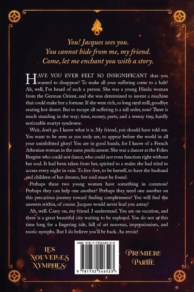 You! Jacques sees you. You cannot hide from me, my friend. Come, let me enchant you with a story. Have you ever felt so insignificant that you wanted to disappear? I've heard of such a person. She was a Hindu girl from the German Orient, and she was afraid of being seen. Wait, don't go. I know what it is. My friend, you should have told me. You love it when others see you, but you struggle to stand out! You are in good hands, for I know of a French Athenian woman who was afraid to not be seen. One shies from attention, the other seeks it out. Perhaps these young ladies have something in common? Perhaps they need one another on this precarious journey to find the objects that will complete them. You will find the answers within, of course. Jacques would never lead you astray! Ah, well. Carry on, my friend. I understand. You are on vacation, and there is a great beautiful city waiting to be explored. You do not at this time care for a lingering tale fraught with danger and exotic nymphs. But I do believe you'll be back. Au revoir!