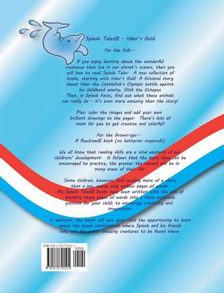 A Reedraw(c) book! Splash Tales(c) are enjoyable and informative books for young readers aged 8 and up, with an exciting new twist! As well as a fun story to read, children can add to the illustrations, colour the images and learn interesting facts about the characters and the ocean environment where they live. Designed to capture the imagination of even the most reluctant reader, Splash Tales will enable any child to be artistic and creative whilst at the same time working on those vital reading skills. The first in the Splash Tales Collection is a story about Splash the dolphin and his close friend Inker the cuttlefish. The Pacific Olympics is coming to town and Splash is desperate to be involved. However, being pretty bad at sport, Splash manages to convince Inker to enter the archery competition. What will happen when Inker is faced by his arch enemy Slink the octopus? It's a nailbiting finish with an important lesson for the bullying octopus, Slink.