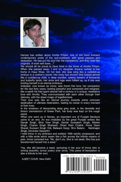 Splashes of Moonlight is the collection of poems of Amrita Pritam, translated from Punjabi to English by Hamza Hassan Sheikh. This book is containing 50 famous poems of Amrita Pritam which are translated from Punjabi to English.