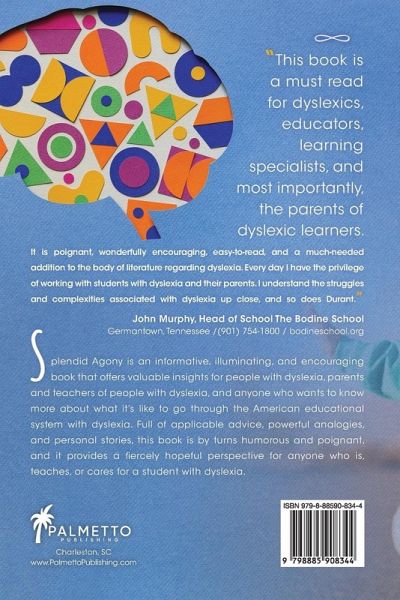 Splendid Agony is an informative, illuminating, and encouraging book that offers valuable insights for people with dyslexia, parents and teachers of people with dyslexia, and anyone who wants to know more about what it's like to go through the American educational system with dyslexia. Full of applicable advice, powerful analogies, and personal stories, this book is by turns humorous and poignant, and it provides a fiercely hopeful perspective for anyone who is, teaches, or cares for a student with dyslexia.