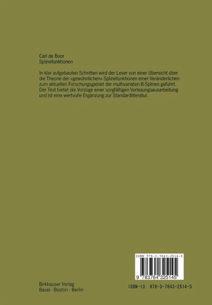 Der Begriff der Splinefunktionen wurde von I. J. Schoenberg 1946 eingefUhrt. "Spline" ist der Name eines Zeichengerates, welches auf mechanischem Weg Interpolatio- aufgaben lost. Dieses Gerat besteht aus einer flexiblen, oft mehrere Meter langen Latte, die auf dem Zeichenbrett aufliegt und dort an bestimmten Stellen durch Gewichte festgehalten wird. Die Form, die die Latte annimmt, hangt von den Elastizitatseigenschaften der Latte abo -, " , , , , , , , I , , , ," -"', , , , , J::----" , I I , I I I , , , , , , , , , , , " ) Fig. 1: Latteninterpo1ation Po1ynominterpo1ation _ - - - - - - - --0 Wir konnen natUrlich versuchen, ein mathematisches Modell fUr dieses mechanische Zeichengerat zu machen, d. h. die Gestalt solcher Kurven mathematisch zu erfassen. - 2 - Die Theorie der Balkenbiegung verlangt, dass die mittlere 2 K quadratische KrUmmung, ("strain energy", Spannungs- J energie) minimiert wird. Lasst sich die Kurve als Graph einer Funktion f auf dem Intervall [a,b] schreiben, so erhalt man mit dem bekannten Ausdruck fUr die Krlimmung K [f" (t) P --------------dt ~ min (1) t [1 +f' (t)2J5/2 a Statt dieses schwierige Extremalproblem zu losen, begnUgt man sich damit, (2) zu minimieren. Die Extremalfunktion fUr das Funktional (2) ist stUckweise ein kubisches Polynom; die Polyn- stUcke gehen an den Bruchstellen so glatt ineinander Uber, dass die Funktion zweimal stetig differenzierbar ist.