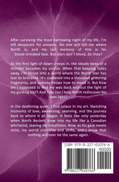 After surviving the most harrowing night of my life, I'm left desperate for answers. No one will tell me where North is, and my last memory of him is his blood-streaked face. But stars don't bleed, do they? As the first light of dawn creeps in, the steady beep of a monitor becomes my anchor. When that beeping fades away, I'm thrust into a world where the North Star has lost its brilliance. It's scattered into a thousand glittering fragments, and nobody knows how to mend it. But how am I supposed to find my way back without the light of my guiding star? And how can I help North rediscover his own light? In the deafening quiet, I find solace in my art. Sketching moments of love, awakening, yearning, and the journey back to where it all began. It feels like only yesterday when North Beckett blew into my life like a Canadian whirlwind, leaving me breathless. Now, as his gaze meets mine, my world crumbles and shifts, and I know that nothing will ever be the same again. Complete series: 1. Counting Fireflies 2. Splintered North