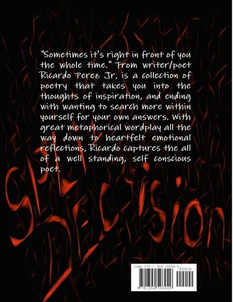 "Sometimes it's right in front of you the whole time." From writer/poet Ricardo Perez Jr, is a collection of poetry that takes you into the thoughts of inspiration, and ending with wanting to search more within yourself for your own answers. With great metaphorical wordplay all the way down to heartfelt emotional reflections, Ricardo captures the all of a well standing, self conscious poet.