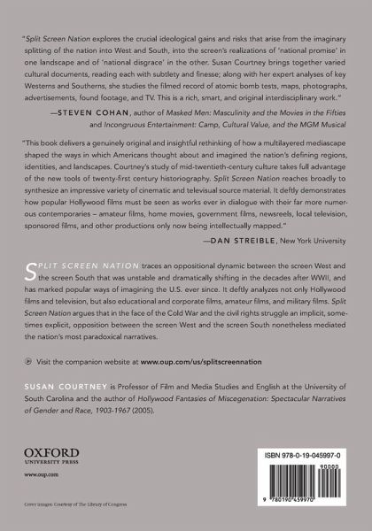 Split Screen Nation traces an oppositional dynamic between the screen West and the screen South that was unstable and dramatically shifting in the decades after WWII, and has marked popular ways of imagining the U.S. ever since. If this dynamic became vivid in Quentin Tarantino's Django Unchained (2012), itself arguably a belated response to Easy Rider (1969), this book helps us understand those films, and much more, through an eclectic history of U.S. screen media from the postwar era. It deftly analyzes not only Hollywood films and television, but also educational and corporate films, amateur films (aka "home movies"), and military and civil defense films featuring "tests" of the atomic bomb in the desert. Attentive to sometimes profoundly different contexts of production and consumption shaping its varied examples, Split Screen Nation argues that in the face of the Cold War and the civil rights struggle an implicit, sometimes explicit, opposition between the screen West and the screen South nonetheless mediated the nation's most paradoxical narratives--namely, "land of the free"/land of slavery, conquest, and segregation. Whereas confronting such contradictions head-on could capsize cohesive conceptions of the U.S., by now familiar screen forms of the West and the South split them apart to offer convenient, discrete, and consequential imaginary places upon which to collectively project avowed aspirations and dump troubling forms of national waste. Pinpointing some of the most severe yet understudied postwar trends fueling this dynamic--including non-theatrical film road trips, feature films adapted from Tennessee Williams, and atomic test films--and mining their potential for more complex ways of thinking and feeling the nation, Split Screen Nation considers how the vernacular screen forms at issue have helped shape how we imagine not only America's past, but also the limits and possibilities of its present and future.