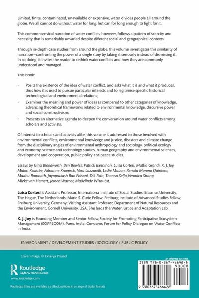 Limited, finite, contaminated, unavailable or expensive, water divides people all around the globe. We all cannot do without water for long, but can for long enough to fight for it. This commonsensical narration of water conflicts, however, follows a pattern of scarcity and necessity that is remarkably unvaried despite different social and geographical contexts. Through in-depth case studies from around the globe, this volume investigates this similarity of narration-confronting the power of a single story by taking it seriously instead of dismissing it. In so doing, it invites the reader to rethink water conflicts and how they are commonly understood and managed. This book: Posits the existence of the idea of water conflict, and asks what it is and what it produces, thus how it is used to pursue particular interests and to legitimise specific historical, technological and environmental relations; Examines the meaning and power of ideas as compared to other categories of knowledge, advancing theoretical frameworks related to environmental knowledge, discursive power, social constructivism; Presents an alternative agenda to deepen the conversation around water conflicts among scholars and activists. Of interest to scholars and activists alike, this volume is addressed to those involved with environmental conflicts, environmental knowledge and justice, disasters and climate change from the disciplinary angles of environmental anthropology and sociology, political ecology and economy, science and technology studies, human geography and environmental sciences, development and cooperation, public policy and peace studies. Essays by Gina Bloodworth, Ben Bowles, Patrick Bresnihan, Luisa Cortesi, Mattia Grandi, K. J. Joy, Midori Kawabe, Adrianne Kroepsch, Vera Lazzaretti, Leslie Mabon, Renata Moreno Quintero, Madhu Ramnath, Jayaprakash Rao Polsani, Dik Roth, Theresa Selfa,Veronica Strang, Mieke van Hemert, Jeroen Warner, Madelinde Winnubst.