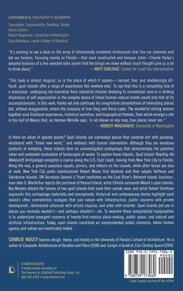 Spoil islands are overlooked places combining dirt with paradise, waste-land with "brave new world," and wildness with human intervention.Mundane products of dredging, these islands form an uninvestigated archipelago that demonstrates the potential value and contested re-valuation of landscapes of waste. Research navigates the U.S. east coast from New York City to Key West, examines these marginalized topographies to understand emergent concerns of 21st-century placemaking, public space, and infrastructure, and discovers that spoil islands constitute an unprecedented public commons, where human agency and nature are inextricably linked.